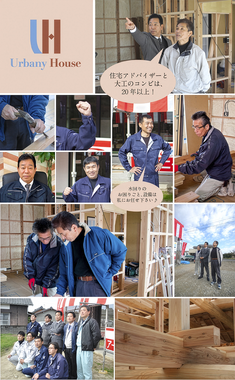 私たちは、日々、考えています! アーバニーハウスは、地域に合わせた暮らし方を考えてゆとりとくつろぎの住まいを提案します。地域に根ざし、地域の住宅事情を知り、人と人とのつながりを大切にし、きめ細やかな対応のできる地場ビルダーの私たちは、地域特性に最適な住まいを提案します。地域に本当に、本当に、密着し、施主様に身近な私たちだからこそ、十分納得いただける快適な住まいづくりを提案していける。 私たちアーバニーハウスは、そう考えています